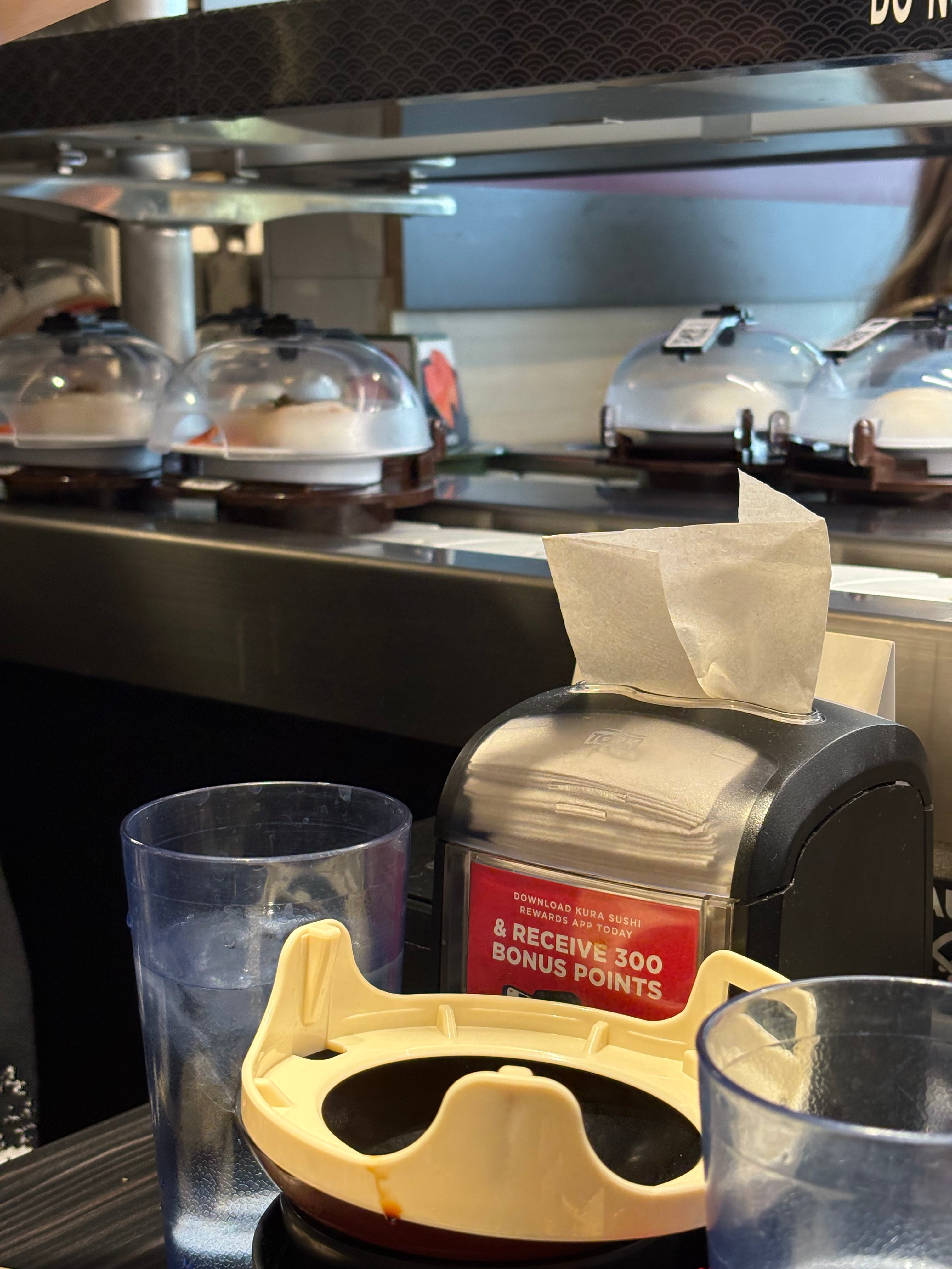 They had special sushi covers and had gifts you can get if you get 15, and then 25 plates of food! When I went with my friends, we ended up getting the charm on the left on the first image shown. The two images on the right are some I took while I was eating there!