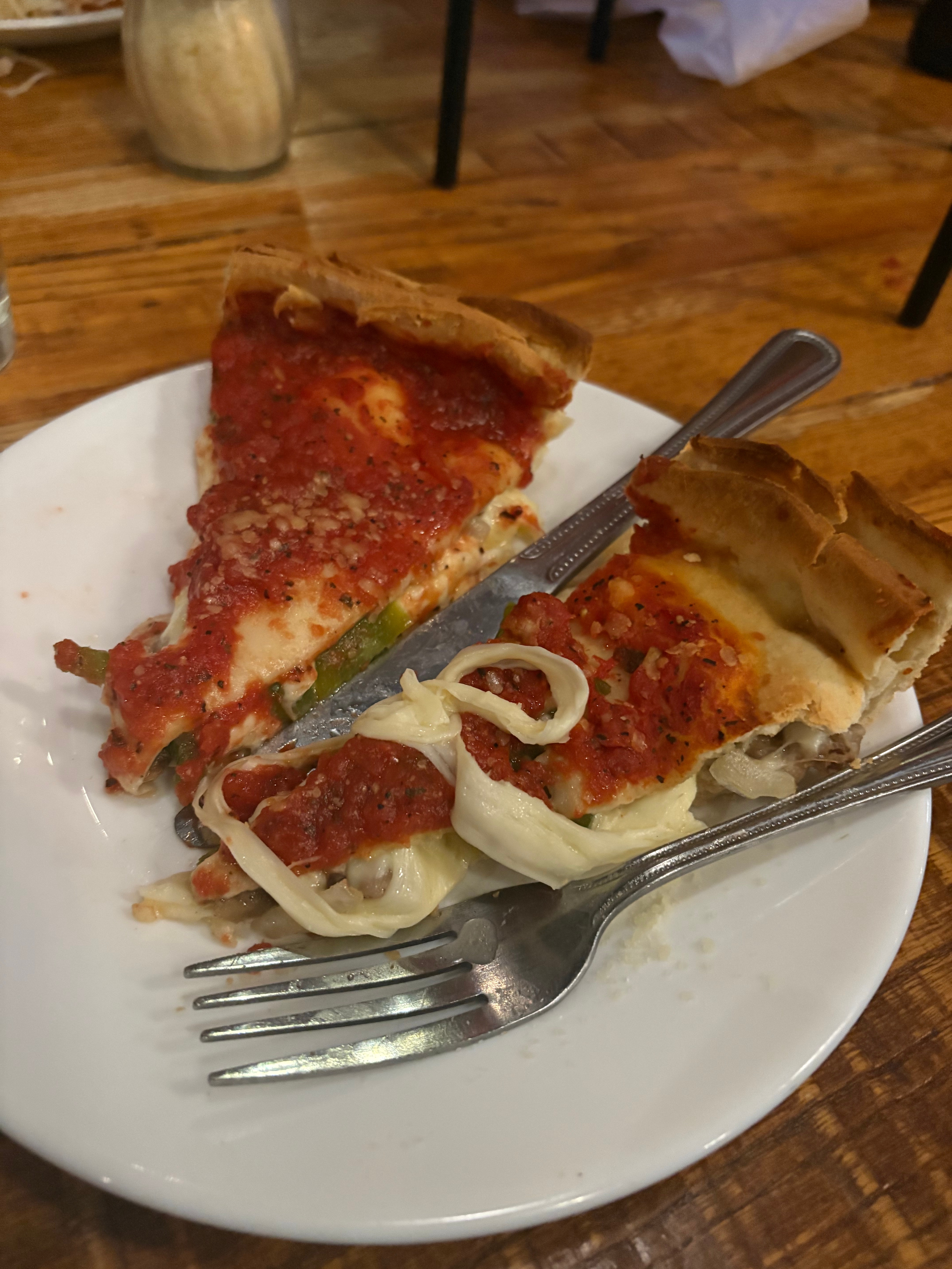 For dinner we went to Giordano’s. It may be a chain restaurant, but it is also one of the best places to get in downtown Chicago. I had a friend recommend a couple of places too that were local, but were way too far for us to make it. Unpopular opinion, I think that Chicago pizza is the best kind of pizza too! Deep dish has so much stuffed into it while having a very satisfying crust to eat! Also here are some extra photos of the old water tower in Chicago fire, which is the oldest building in Chicago, which was only build a couple years before the great Chicago fire.